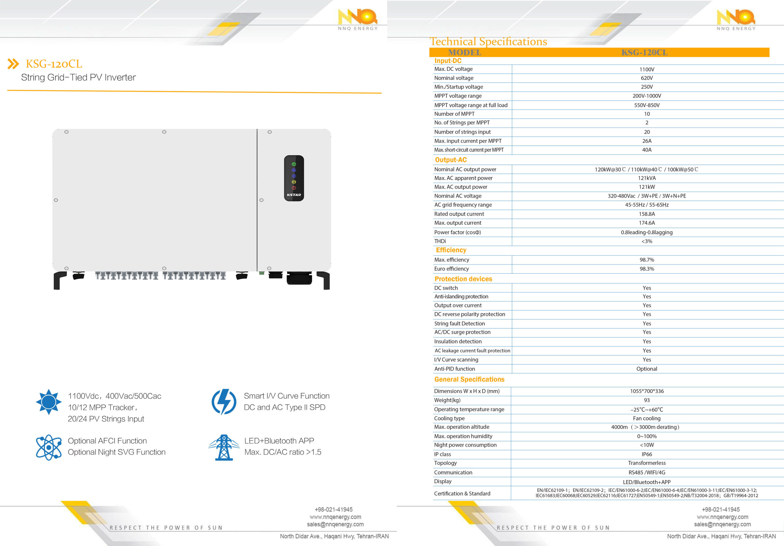 اینورتر خورشیدی ۱۲۰ کیلووات سه فاز متصل به شبکه برند کِی استار(KSTAR)