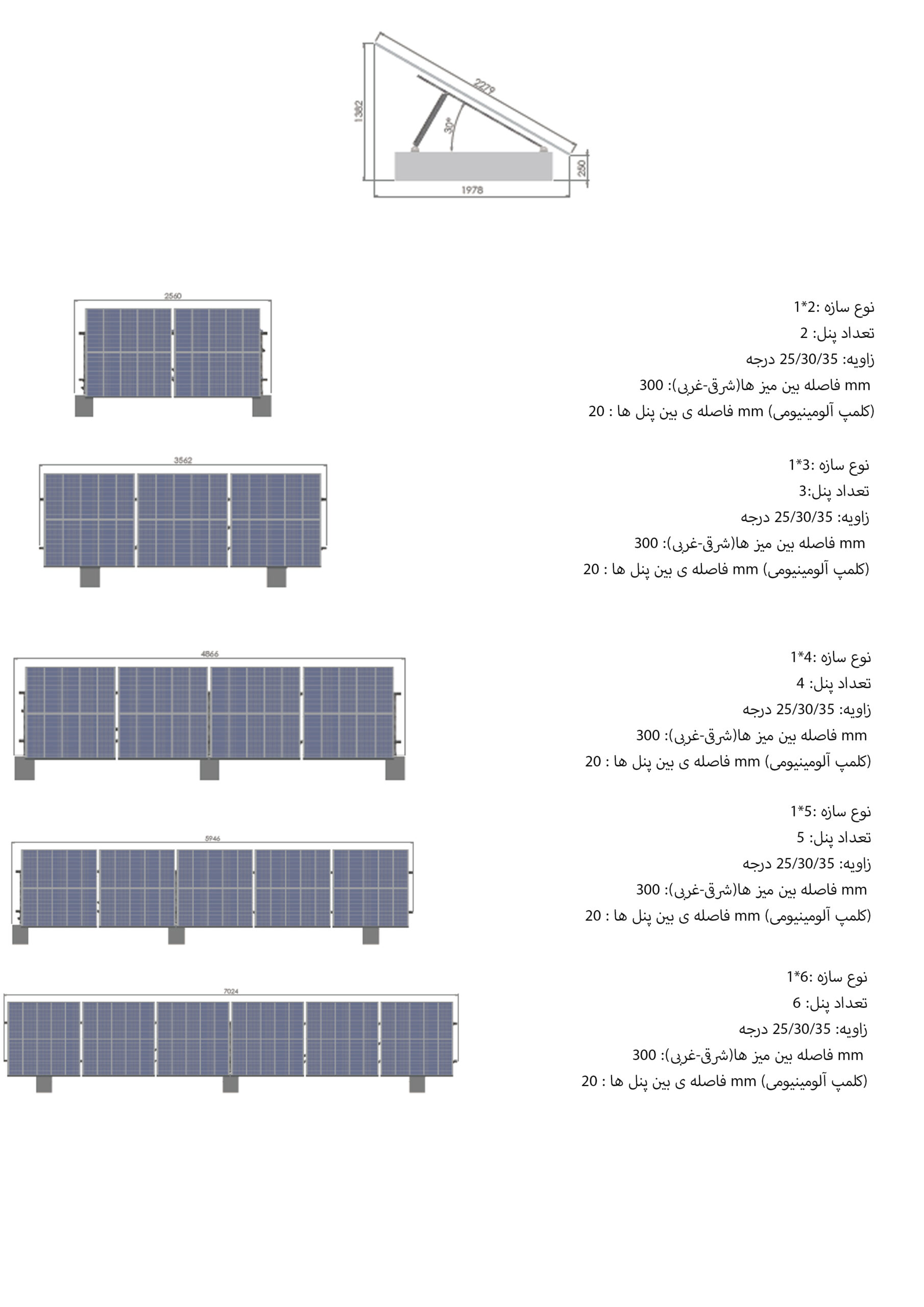 - نوع سیستم : سازه ثابت تک ردیفه ( زمینی، پشت بامی، نیروگاهی و کشاورزی)